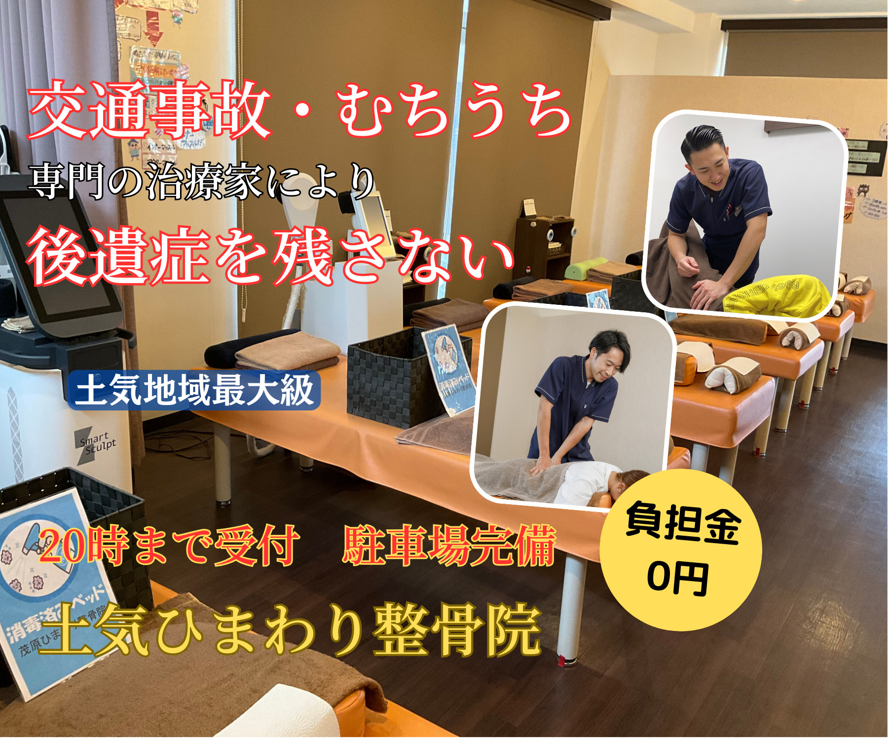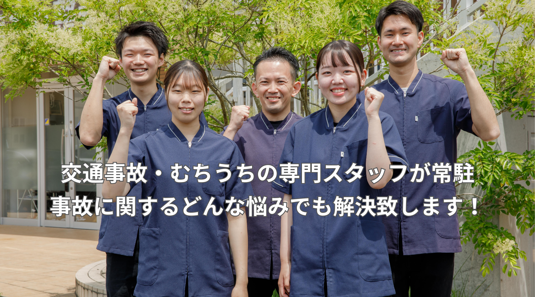 むちうちとは、交通事故等の追突、衝突、急停車等によって頭部が激しく動き、頚部などに障害が発生することをいいます。「むちうち症」は正式な傷病名ではなく、外傷性頸部症候群・頸椎捻挫などとも呼ばれます。「むちうち症」という名前から 、ムチで強く叩かれた時にできる外傷を連想しますが、本来は「ムチ振り症」とでもいうべきで、胴体の上にやや不安定な状態で乗っている重い頭部が、強い衝撃によりムチを振り回してしなったときのようなS字形の動きを強いられ、それにより様々な症状(頭痛、めまい、はき気、手先のしびれ)が出現します。 自動車事故、特に追突(おかまをほる)・衝突による場合が多いです。他にも労働災害、スポーツ障害(ラグビー、サッカー等のコンタクトスポーツ)による例もあります。